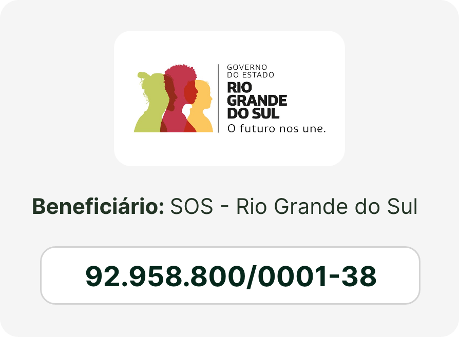 Doe qualquer valor para “SOS Rio Grande do Sul” via Pix para a compra de materiais de apoio para os desabrigados.